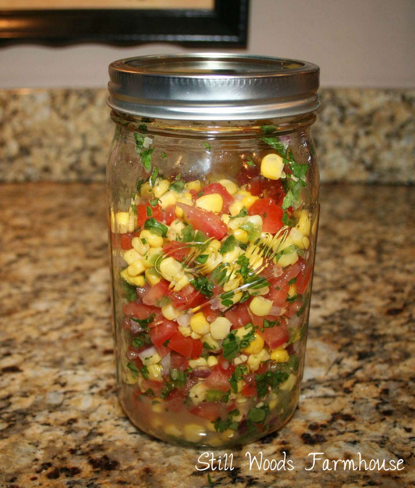 Let's start with a fabulous, easy corn salsa. I like to mix this in a large Mason jar. Great for taking on picnics. I could eat a whole jar of this!